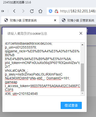 如果已进行了第二步登录或已进入游戏,上述方法所获得的cookie可能将无法用于云管家的登录了。但可以偿试将地址栏输入的javascript代码改为如下内容试一下: